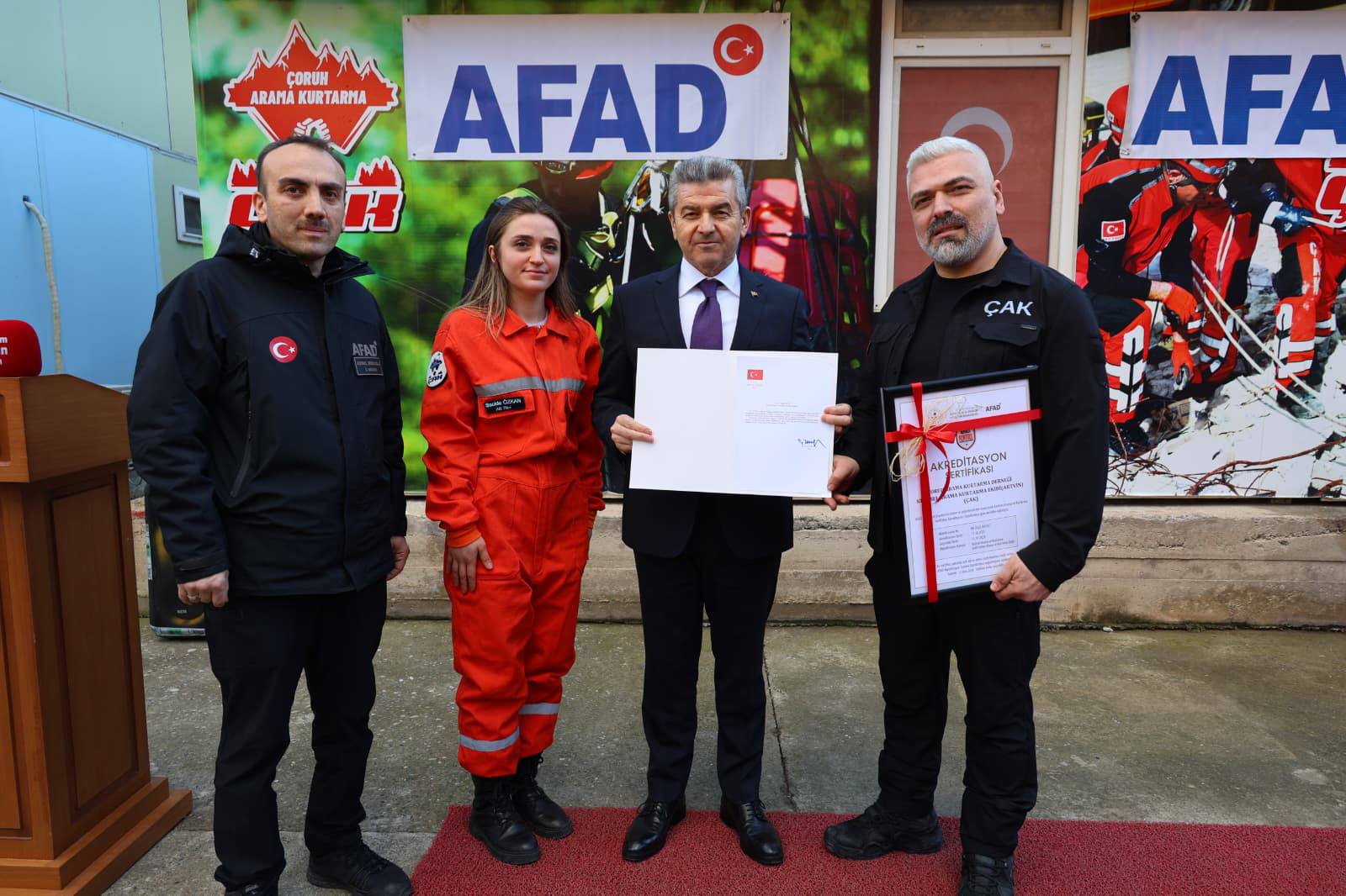 Programda konuşan Vali Ergün, AFAD akreditasyon sürecinin ekiplerin eğitim, donanım ve operasyonel yeterliliğini ulusal ve uluslararası standartlar doğrultusunda belgeleyen önemli bir aşama olduğunu vurguladı. Gönüllülük esasıyla görev yapan ÇAK ekibine teşekkür eden Ergün, başarılarının devamını diledi.