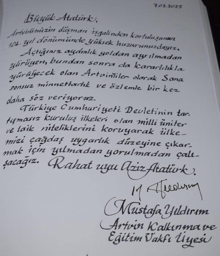 Açtığınız aydınlık yoldan ayrılmadan yürüyen, bundan sonra da kararlılıkla yürüyecek olan Artvinliler olarak sana sonsuz minnetterlık ve özlemle bir kez daha söz veriyoruz.