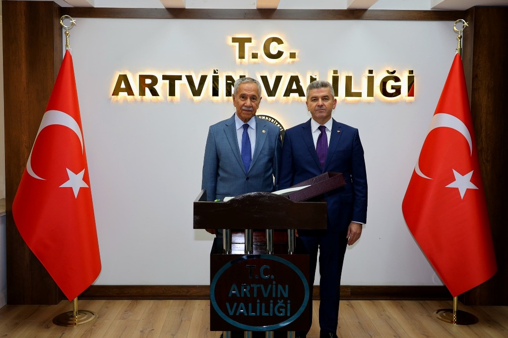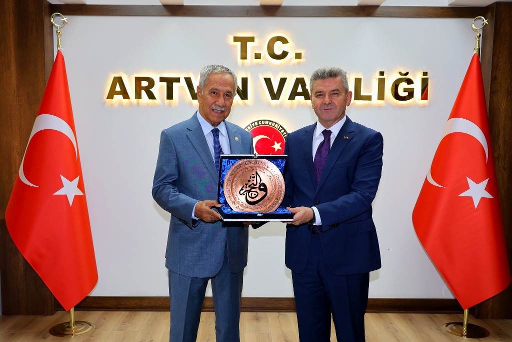 Arınç’ın kısa ziyareti nedeniyle Artvin Valisi Ergün, kendisine teşekkür ederek hediye takdim etti.