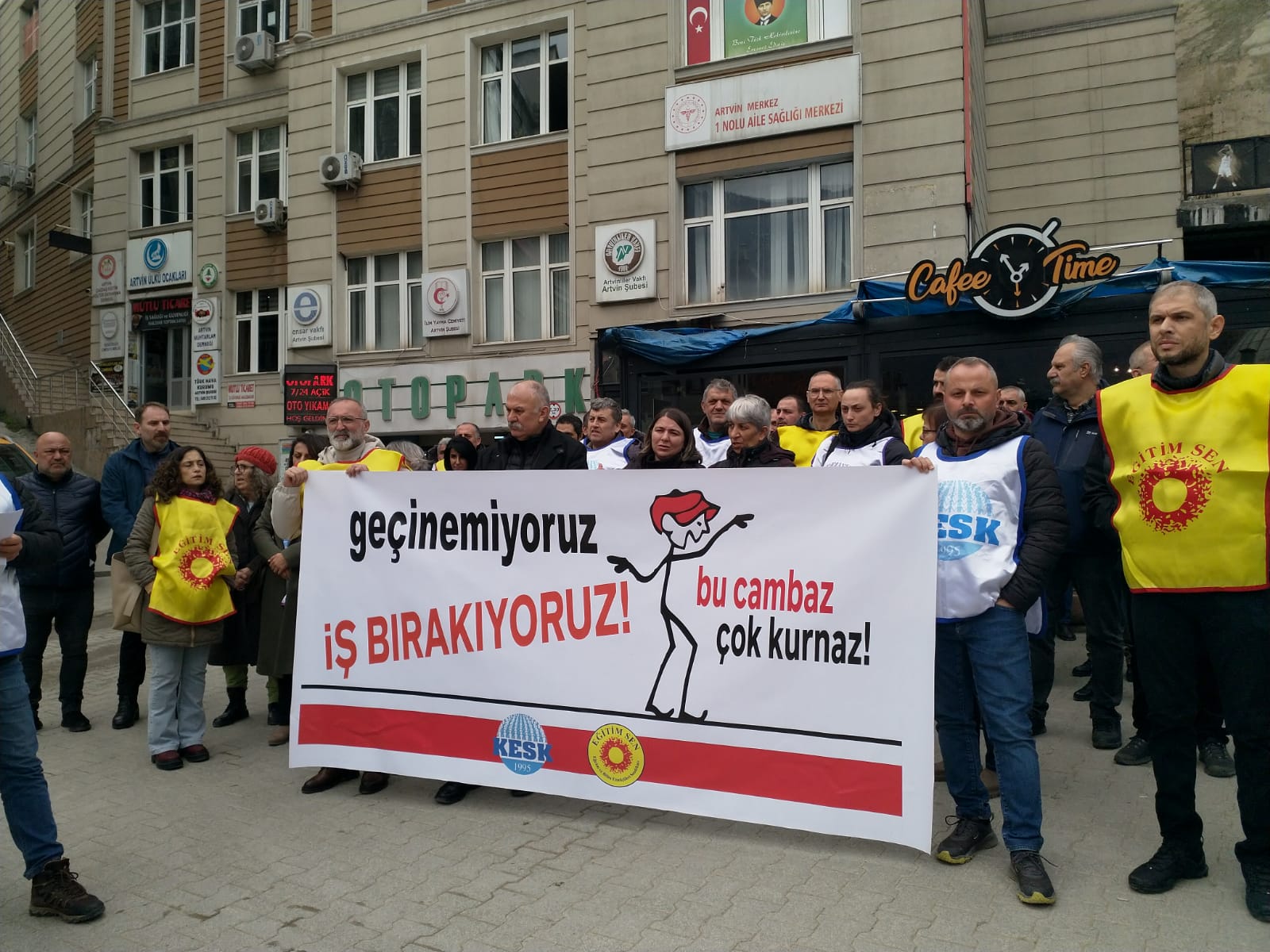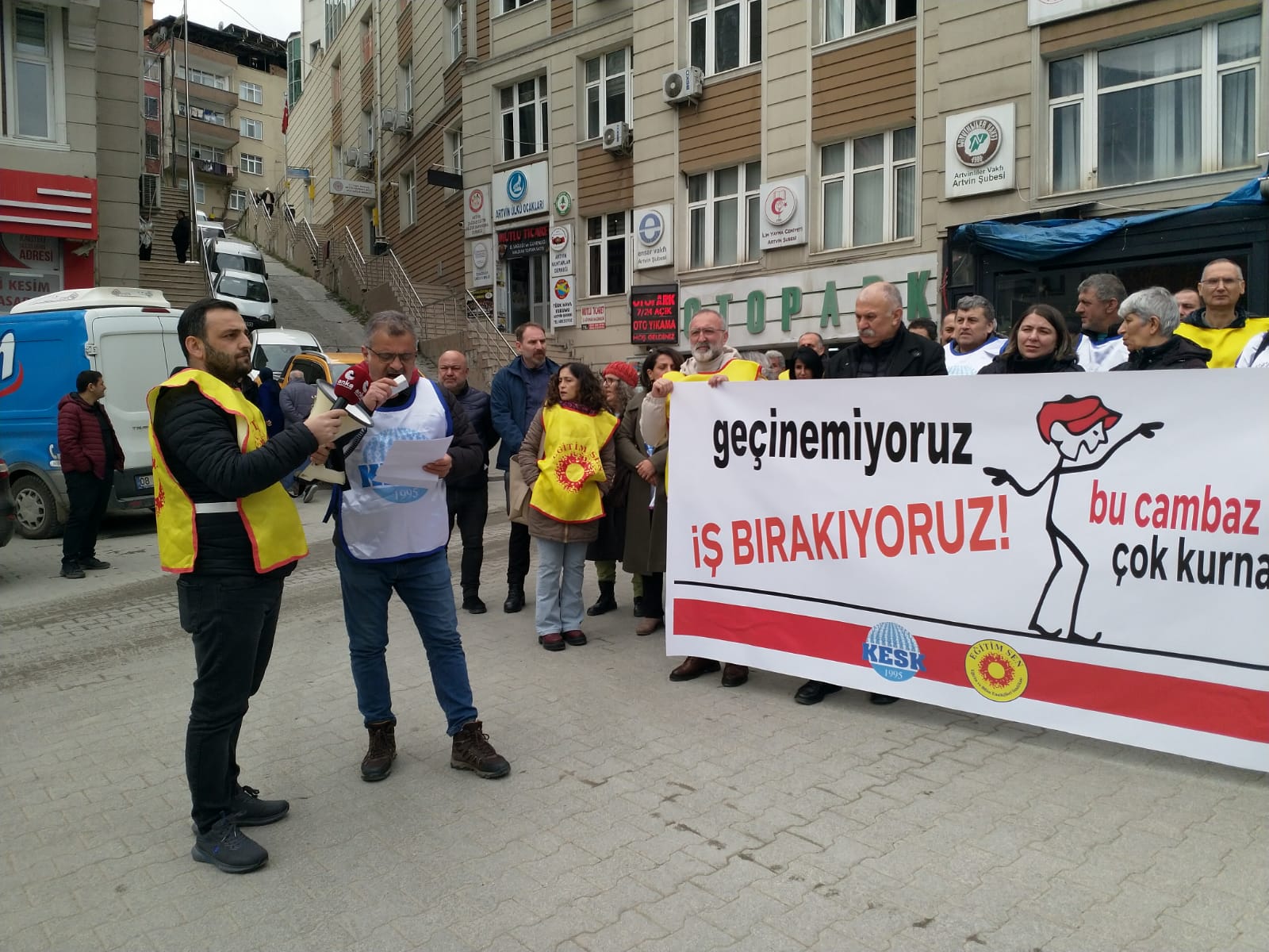Bizleri yoksulluğa ve güvencesizliğe sürükleyen politikalara karşı güçlerimizi birleştiriyor, sesimizi yükseltiyoruz. Emeğimizin karşılığını almak, çocuklarımıza daha iyi bir gelecek bırakmak için bugün tüm işyerlerimizde iş bırakıyor ve siyasi iktidarı uyarıyoruz. Çünkü geçinemiyoruz!