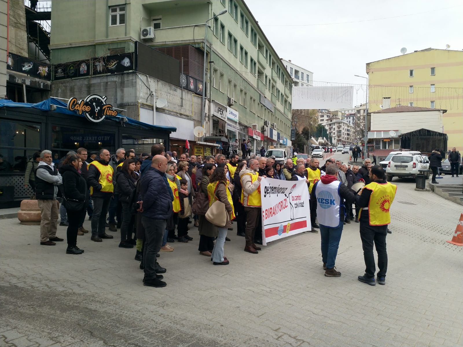 Çok Katlı Otopark önünde toplanan emekçiler hep bir ağızdan asgari ücrete, kamu emekçilerine ve işçilere reva görülen zamları protesto ettiler.