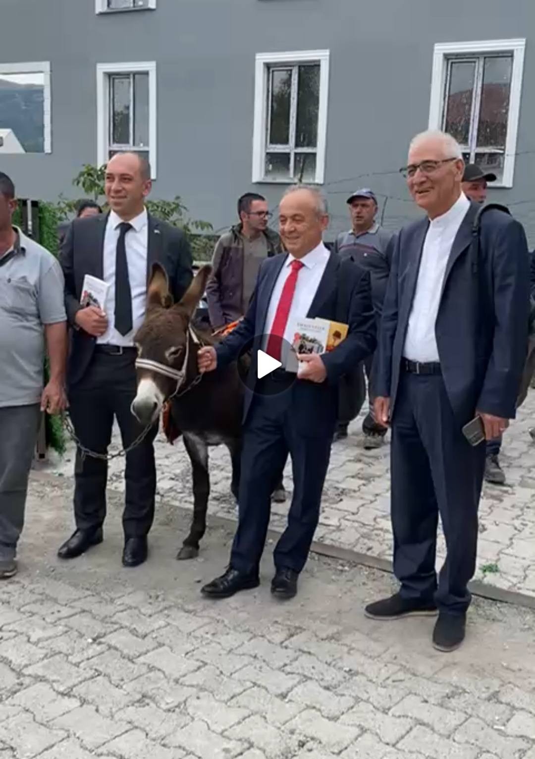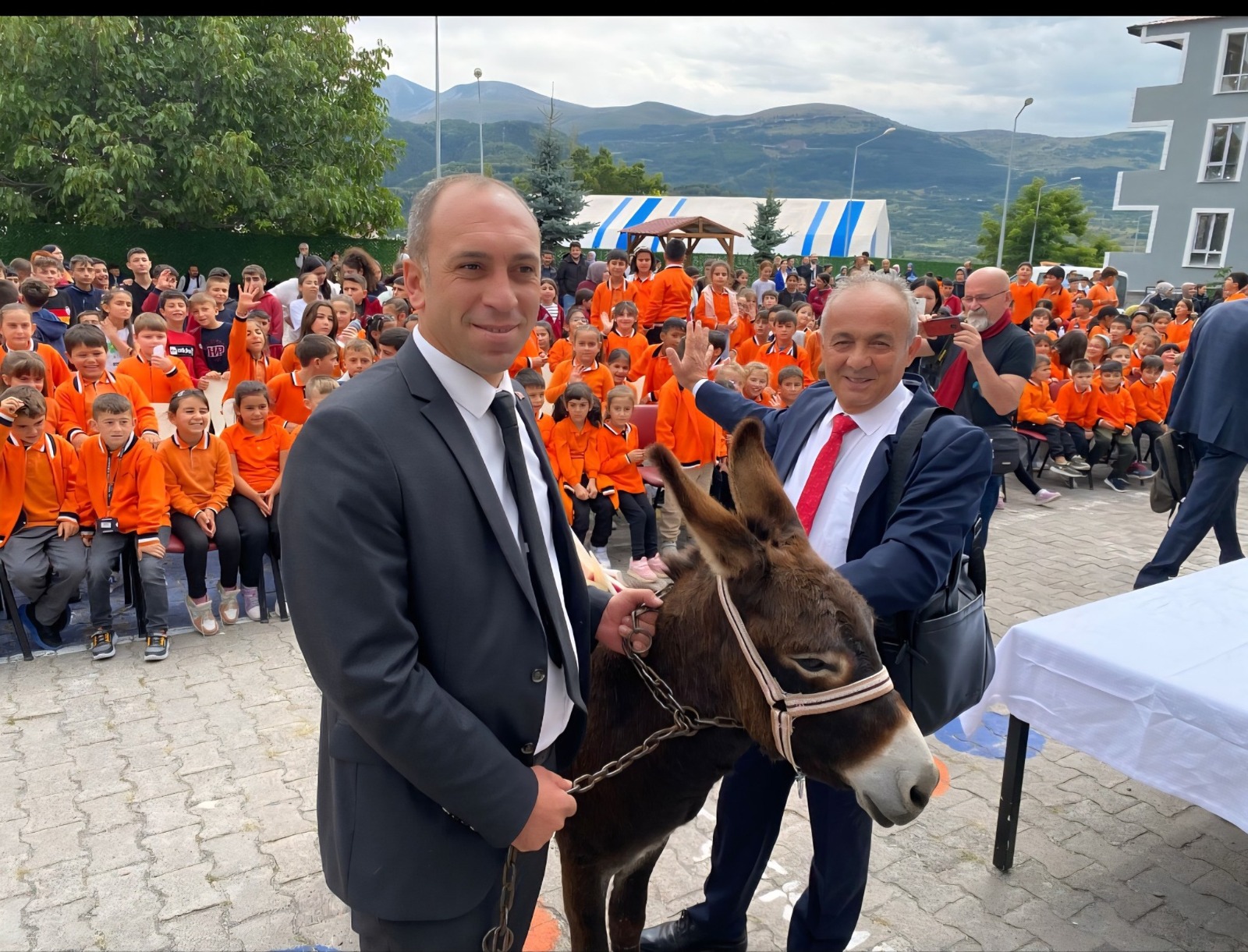 İmza etkinliğinin yapılacağı Posof İlkokulunun sahasını yüzlerce çocuk, veli ve ziyaretçi doldurmuştu. Bir süre sonra alkışlar eşliğinde Yazar Ersin Bilge, Belediye Başkanı Erdem Demirci ve kalabalık bir grup, sırtındaki halı heybeye yüklü kitaplarla bir eşekle alana giriş yaptılar.