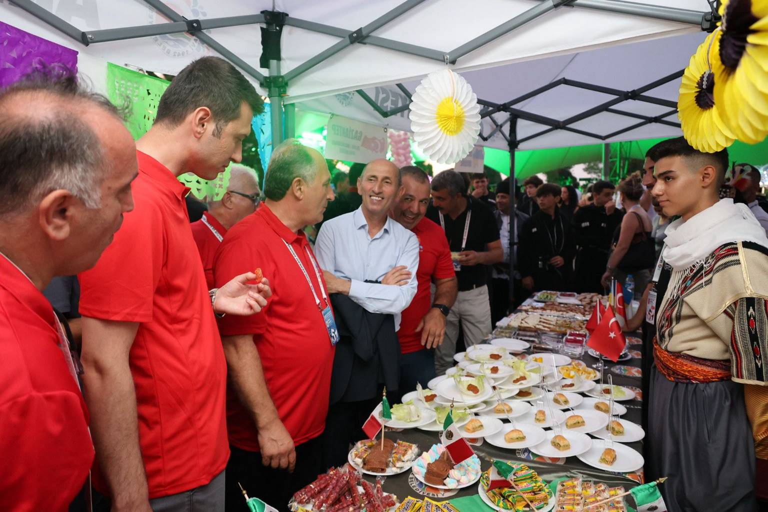 Burada uluslararası ekiplerin kendi ülkelerine özgü yiyeceklerin ve el sanatlarının sergilendiği stantlar, protokol üyeleri ve vatandaşlar tarafından gezildi.