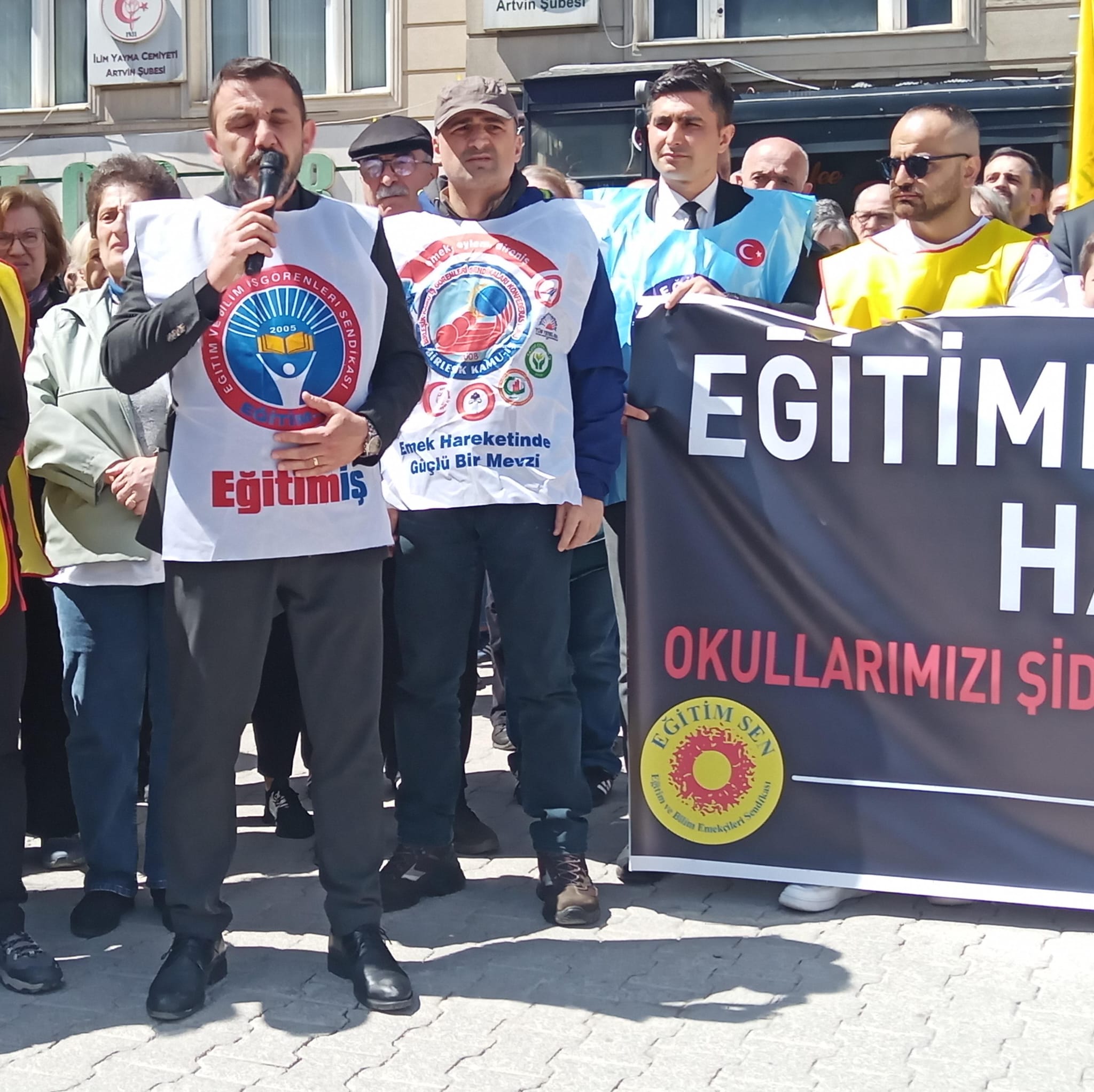 Eğitim-İş Artvin Şube Başkanı Mehmet Mahir Yıkıcı da yetkililerin sorumluluklarını yerine getirmediğini belirterek, “Sendikalarımızın rengi farklı olsa da akan kanın rengi aynıdır. Eğitimde yetkililerin beceriksizliği nedeniyle şiddet vakaları artmaktadır. Gerekli sorumluların istifa etmesi gerekmektedir” dedi.