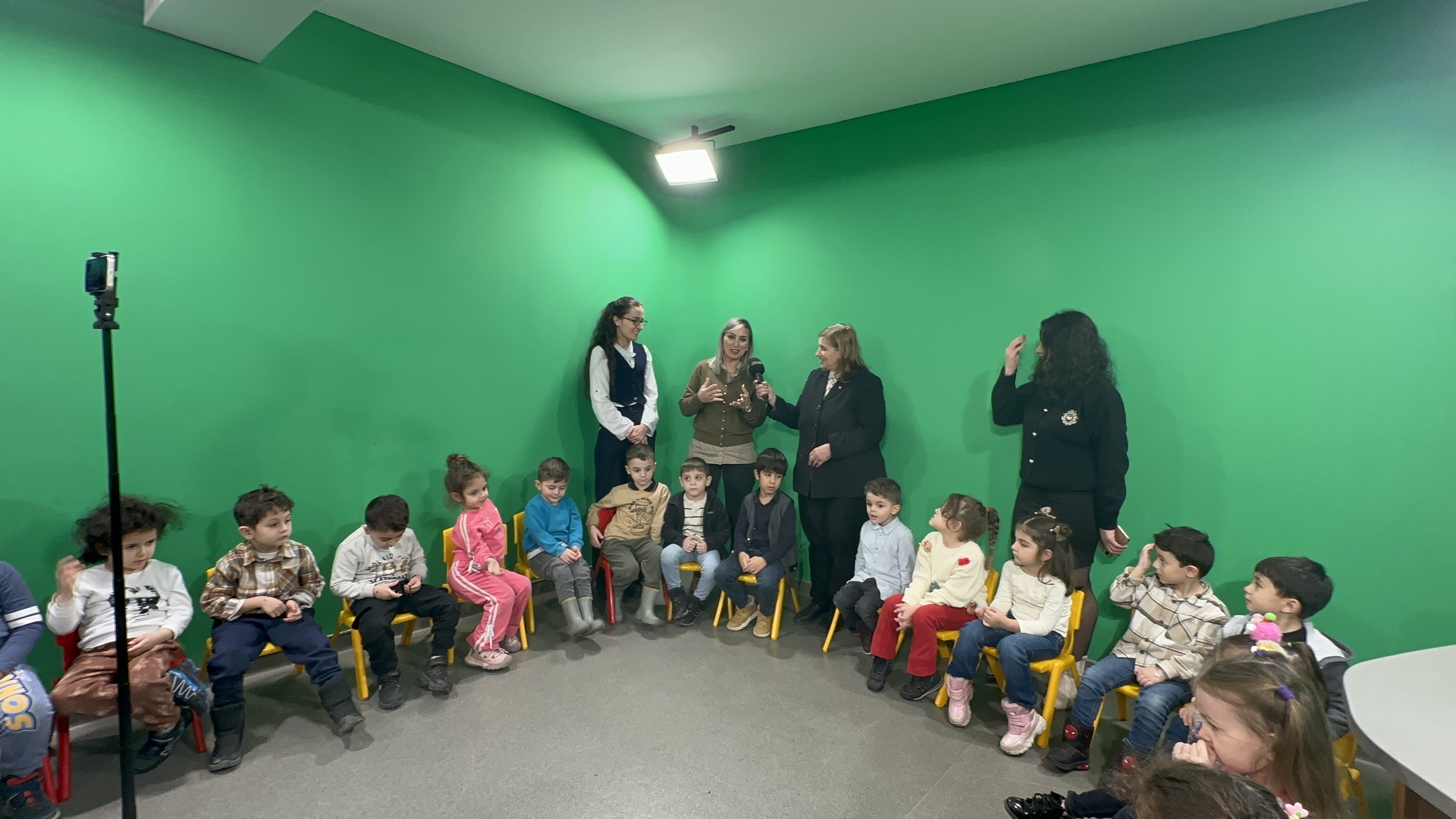 Çocukların mutluluğu, basın emekçilerinin yüzünde tebessüm, stüdyoda ise sıcacık bir atmosfer bıraktı.