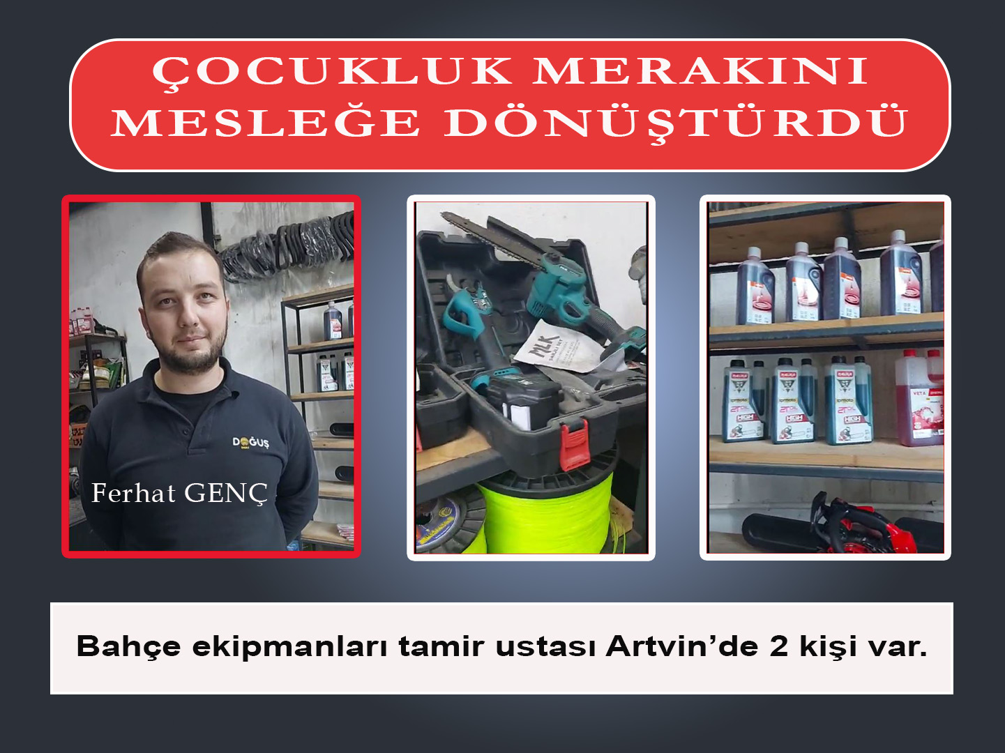Artvin’de bahçe ekipmanlarını tamir ederek vatandaşlara hizmet veren genç girişimci ve zanaatkâr Ferhat Genç, çocukluk merakını mesleğe dönüştürdü. Anadolu Lisesi mezunu olmasına rağmen tamir işine duyduğu ilgi onu bu alana yönlendirdi.
