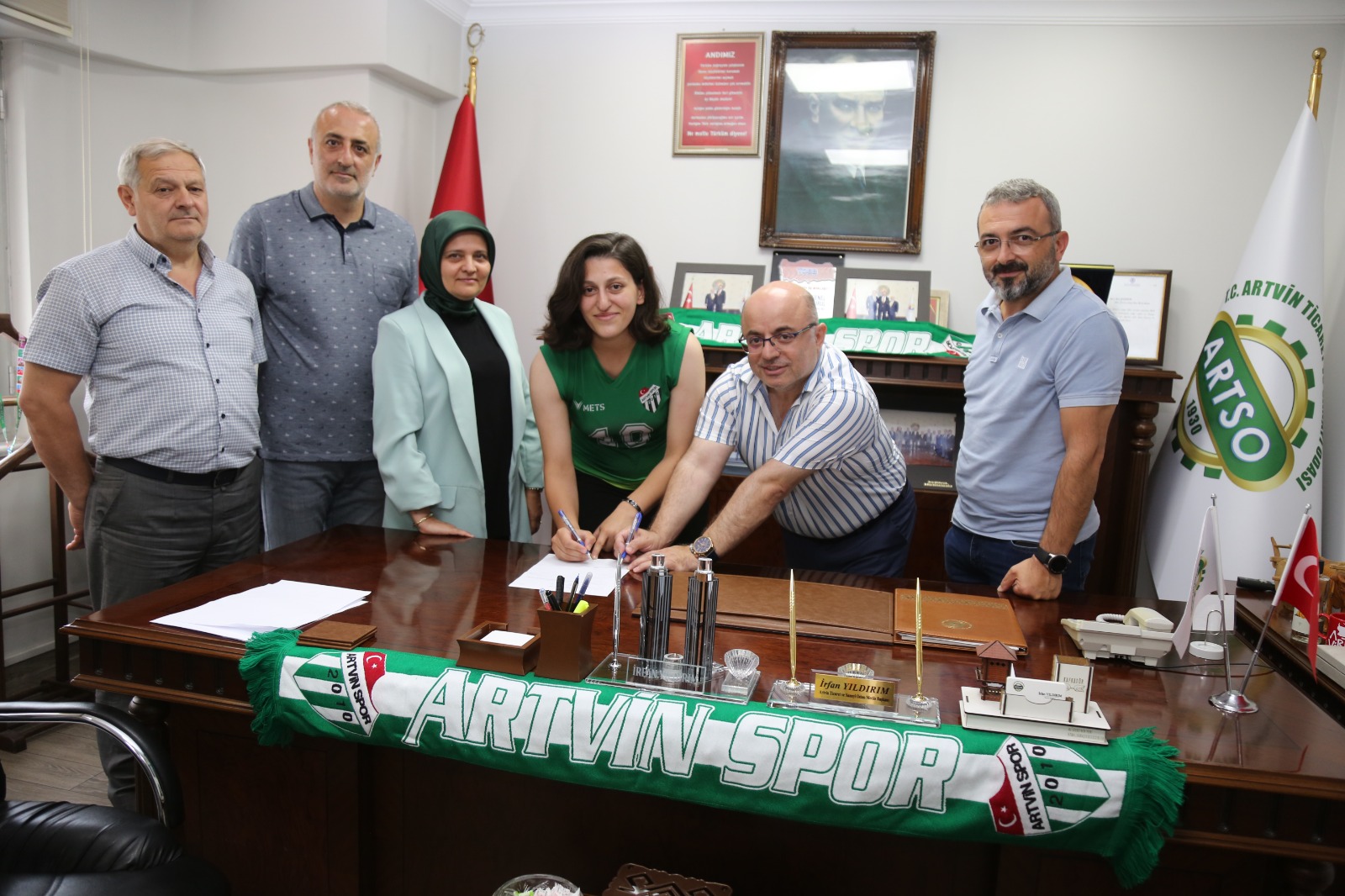 Artvin Ticaret Odası Toplantı Salonu’nda düzenlenen ve Başkan İrfan Yıldırım, yönetim kurulu üyeleri Göksel Sönmez, Seçkin Kurt, Okan Ersöz, Özlem Sarayoğlu, Yasemin Değirmenci, Mustafa Kemal Kahraman, Asım Yılmaz ve Hakan Ermiş’in de katıldığı imza töreninde, Gonca Akar, Kübra Gür, Özden Kolivar, Selen Gerez, Hilal Güner, Azra Yeniçeri, Rüya Altınkaya ve Zeynep Özdemir ile birer yıllık sözleşme yapıldı.