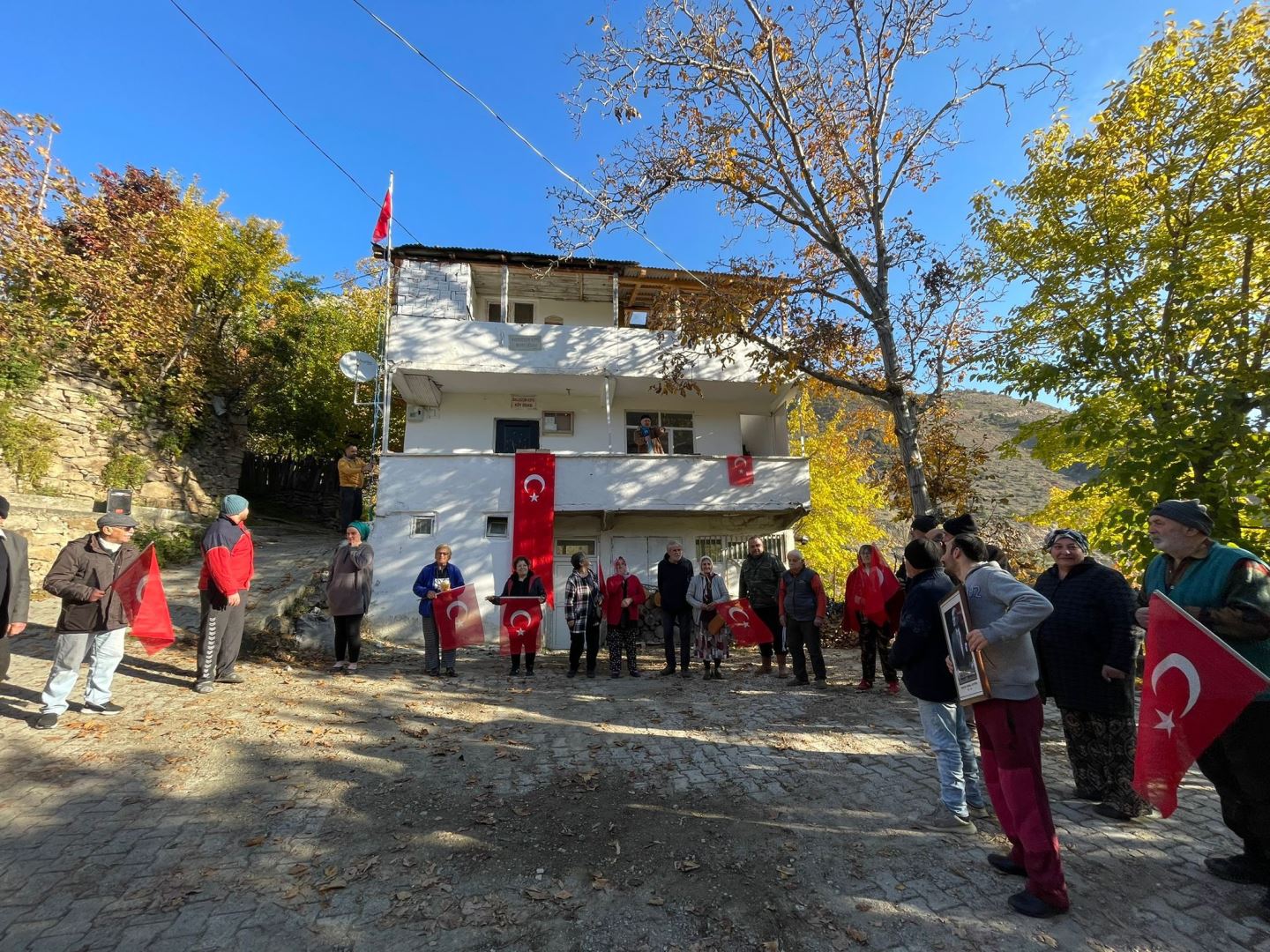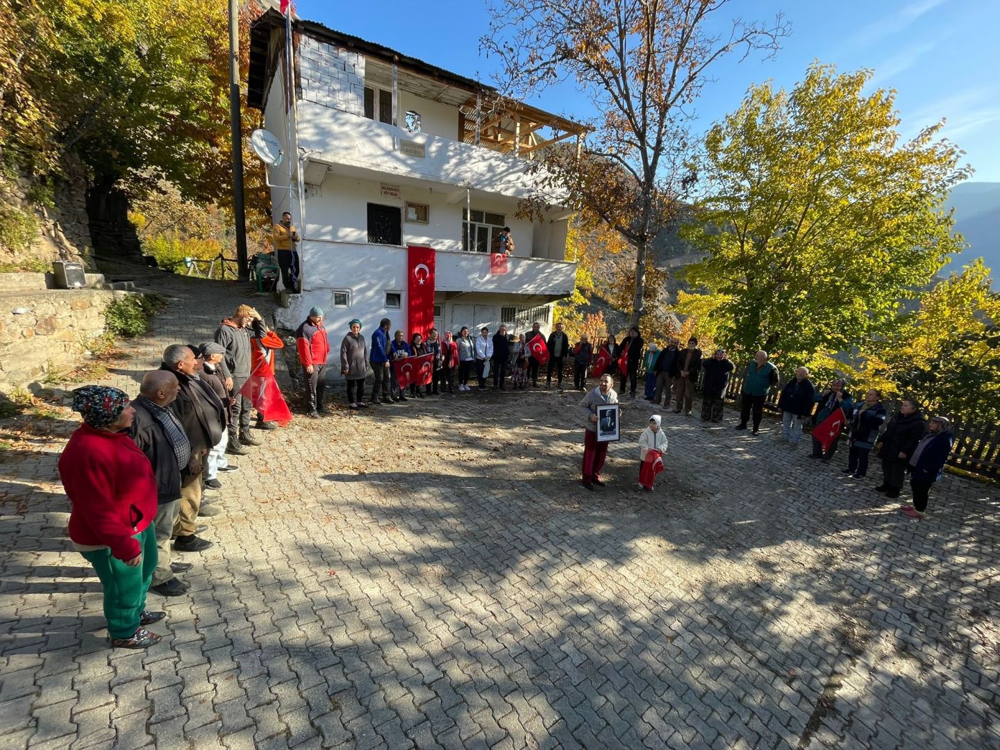 Artvin Merkez ilçeye bağlı Ballıüzüm( Drink) köylüleri Atatürk’ü ölümünün 86. yılında andı. Köyde zeytin hasadı köylüler, zeytinliğe gitmeden önce saat: 09;05’te köy meydanında saygı duruşunda bulundu.