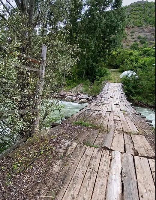 Hayvancılık ve tarım yapan Zeynep Erdem’in oğlu Erdem Demir, tahtaları çürüyen asma köprü için tahta Şavşat Orman İşletmesinden istedi. Ancak verilmedi. Toplamda 8 metreküp bir keresteye ihtiyaç var. Yatalak annesi var, hayvanları var ve 10 hanenin arazisi orada. Bir an önce köprünün tahtaları değişmeli. 25 yıl önce yapılan köprünün Denge halatları da takılmamış! Karşıda yatalak bir insan var. Geçende rahatsızlanmış, köprüden ambulans geçemediği için hastayı 4 saatlik bir gecikmeyle AFAD’dan alınan bir arazi aracı ile Üzümlü köyünden alınmış. Ama o yılda çok dar ve tehlikeli! Gerçekten içler acıdı bir durum.