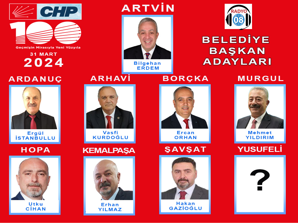 Şavşat, Ardanuç, Kemalpaşa ilçelerinde ön seçim yapan CHP; Artvin, Arhavi, Hopa Borçka ve Murgul İlçe Belediye Başkan adaylarını atama yoluyla belirlemiş oldu.