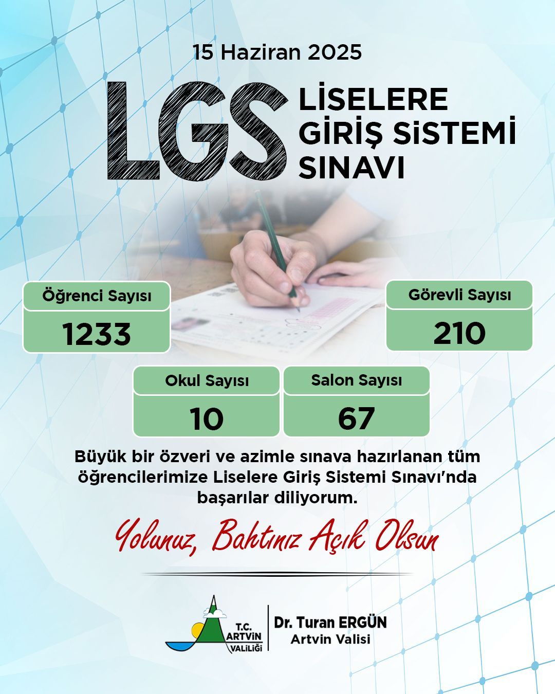 Artvin Valiliği ve Milli Eğitim Müdürlüğü LGS sınavına girecek öğrencilere başarılar diledi.