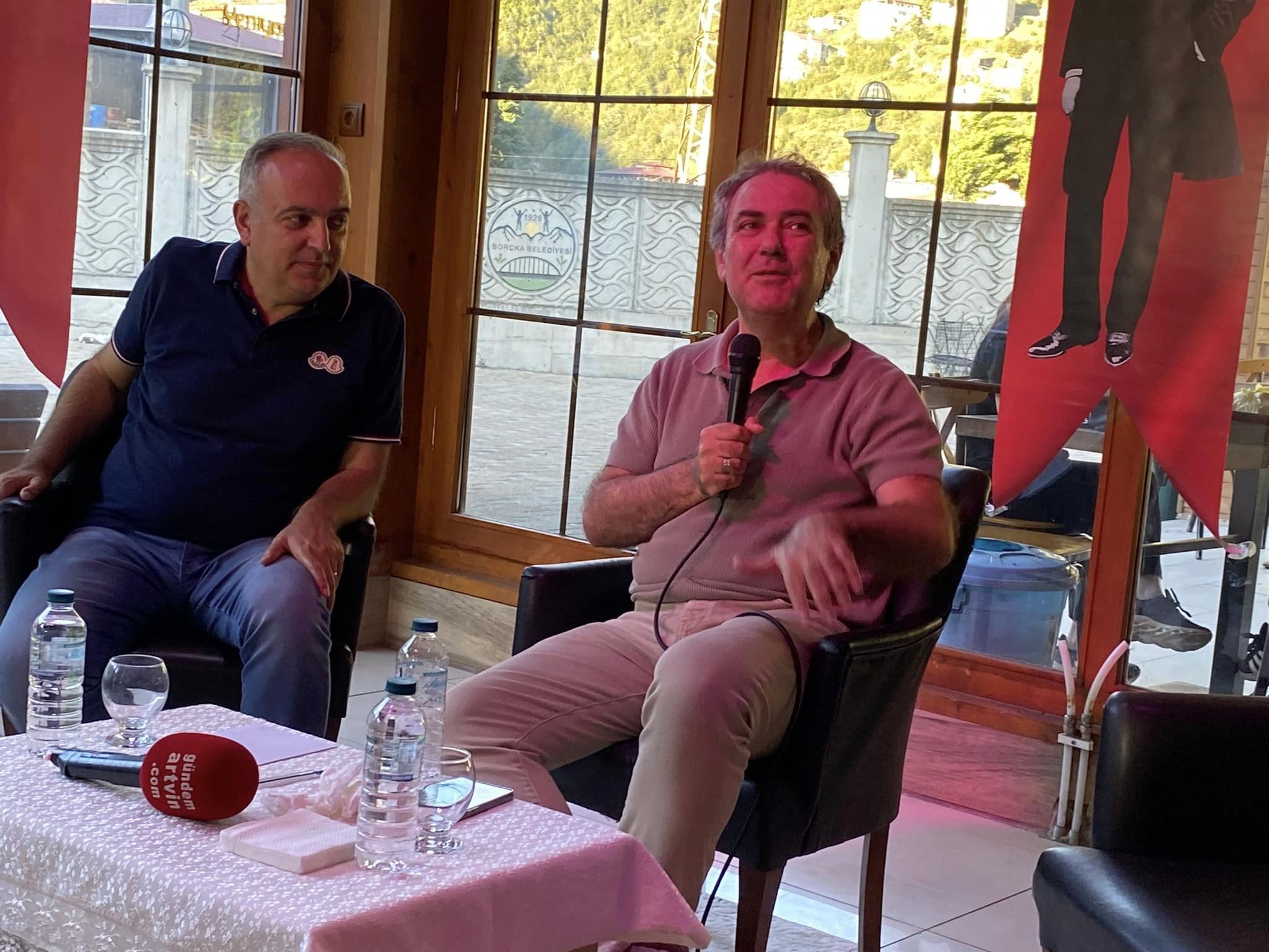 Meydan, Borçka halkının yoğun katılım gösterdiği söyleşide laiklik, köy okulları, eğitim, cumhuriyet konularına değinerek konuşmalar gerçekleştirdi.