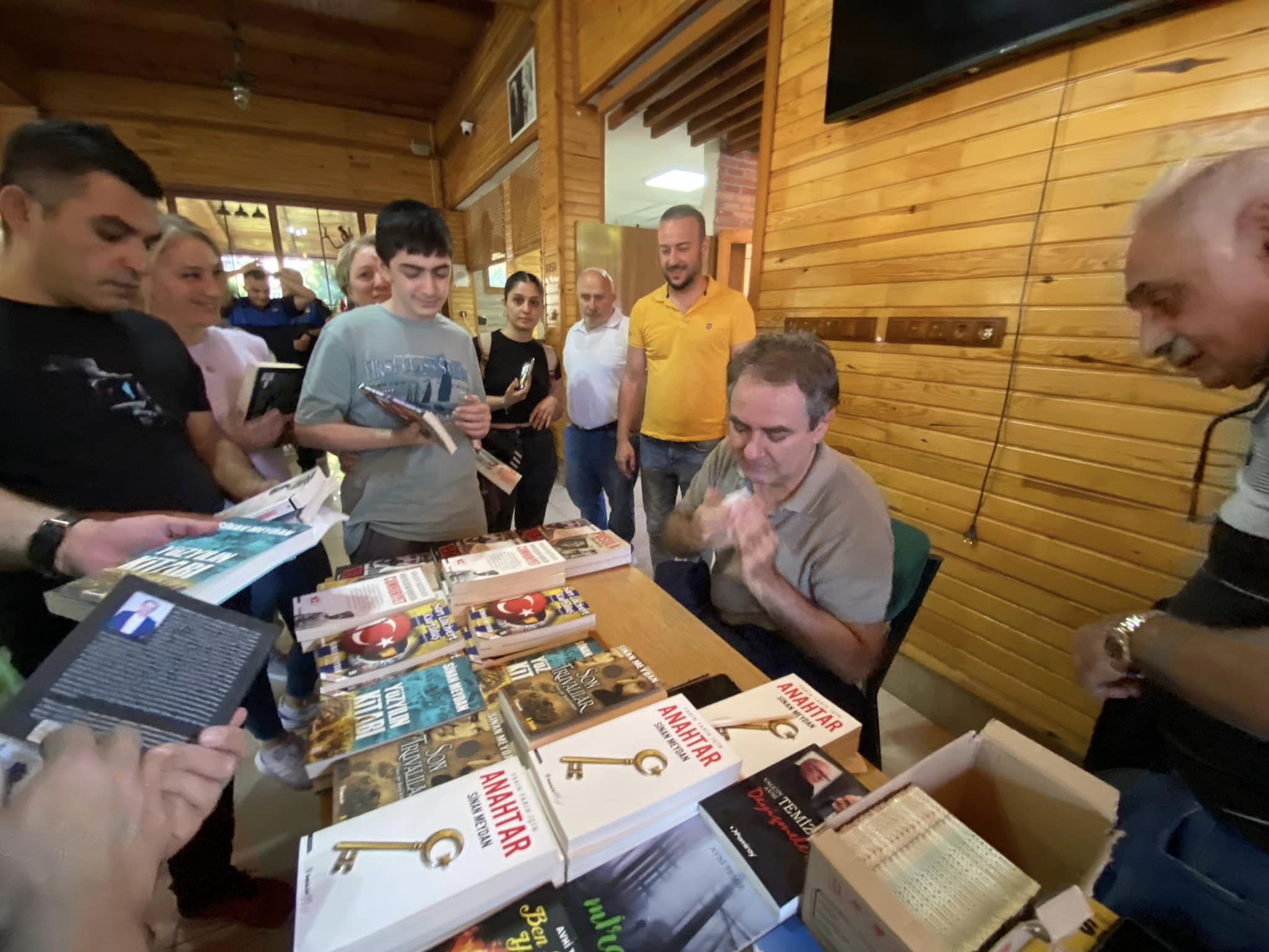 Gerçekleşen keyifli söyleşinin ardından Sinan Meydan, sevenleri için kitaplarını imzalayarak hatıra fotoğrafı çekildi.